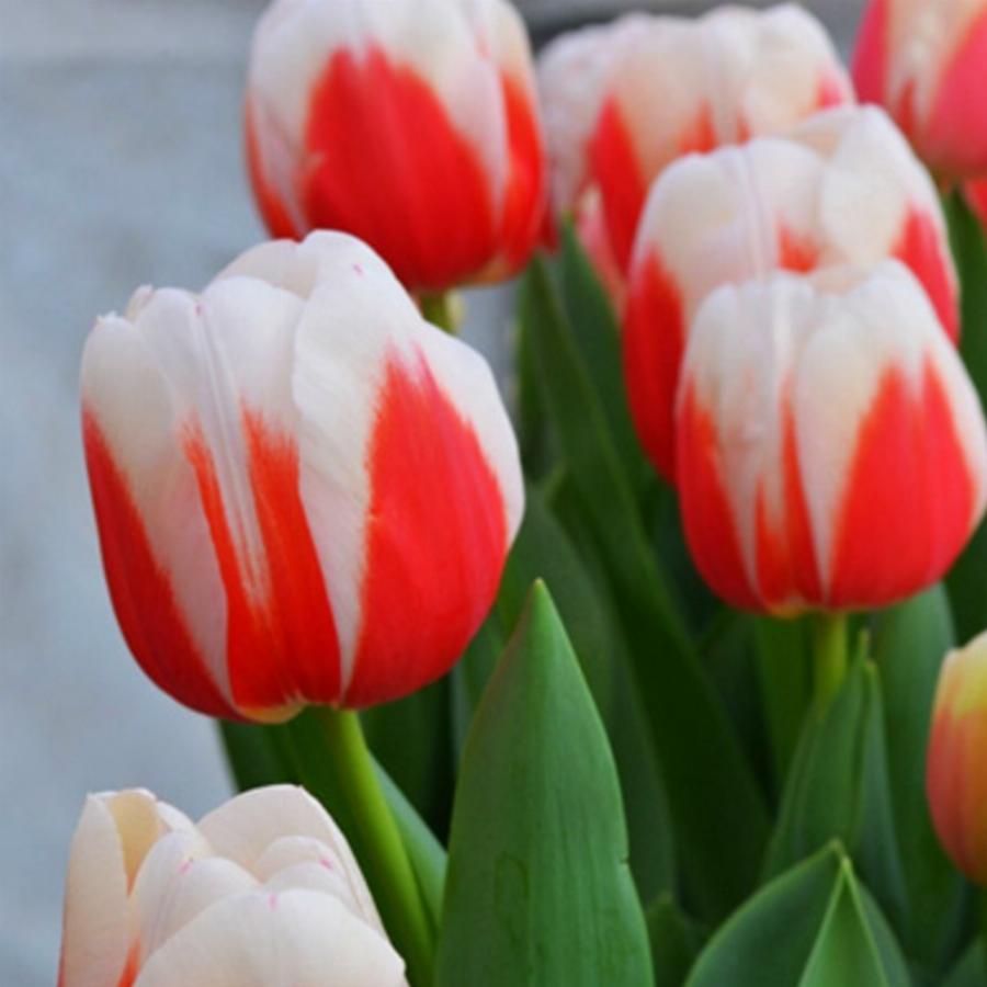 Cорт, отличающийся оригинальным окрасом бутонов. Основной цвет красный, верхняя часть лепестков – белая. Цветок напоминает заснеженную горную вершину. Благодаря мощному стеблю – долго сохраняет свой вид в вазе. Высота цветков может достигать 40–50 см, высота бутона цветка 7 – 9 см, что позволяет им выделяться на фоне других растений.