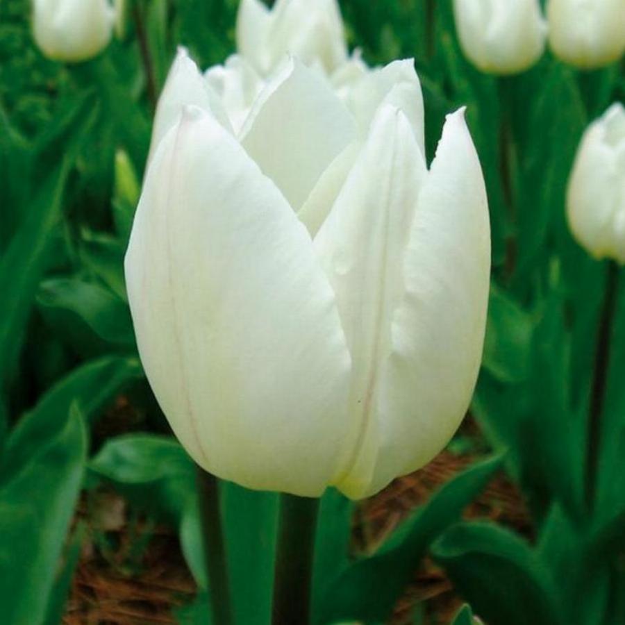 Относится к группе Простые ранние. Высота растения 45 см. Форма цветка бокаловидная или овальная, не раскрывающиеся широко, размер цветка 7-10 см в высоту. Окрас кипельно-белый. Посадка конец сентября — октябрь. Глубина посадки зависит от размера луковицы и составляет в среднем 7- 8 см. Минимальное расстояние между луковицами должно вдвое превышать их диаметр. Период цветения — с середины мая. Почва — нейтральная или известково — кислая, хорошо дренированная, умеренно увлажненная. По освещённости предпочитают солнечные безветренные места или полутень. Сфера использования — в озеленении, некоторые сорта хорошо поддаются выгонке, а благодаря крепким цветоносам — хороши для срезки.