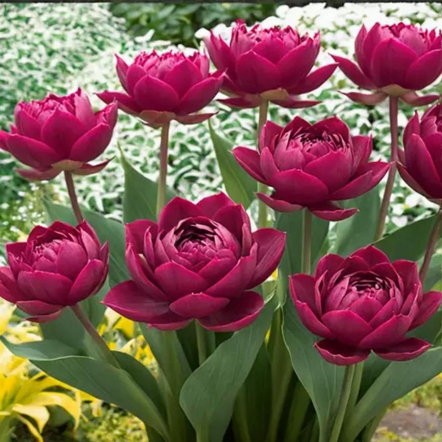 Высота растения до 40 см. Бокал длинной до 6 см., диаметр до 10 см.. Цветение раннее. Распускаются тюльпаны World Bowl во второй половине апреля и цветут не менее 2-3 недель. Особое отличие — цветы этой группы имеют большое количество лепестков — густомахровые, как пионы (за сходство строения цветка с пионами такие тюльпаны так и называют — пионовидными).
